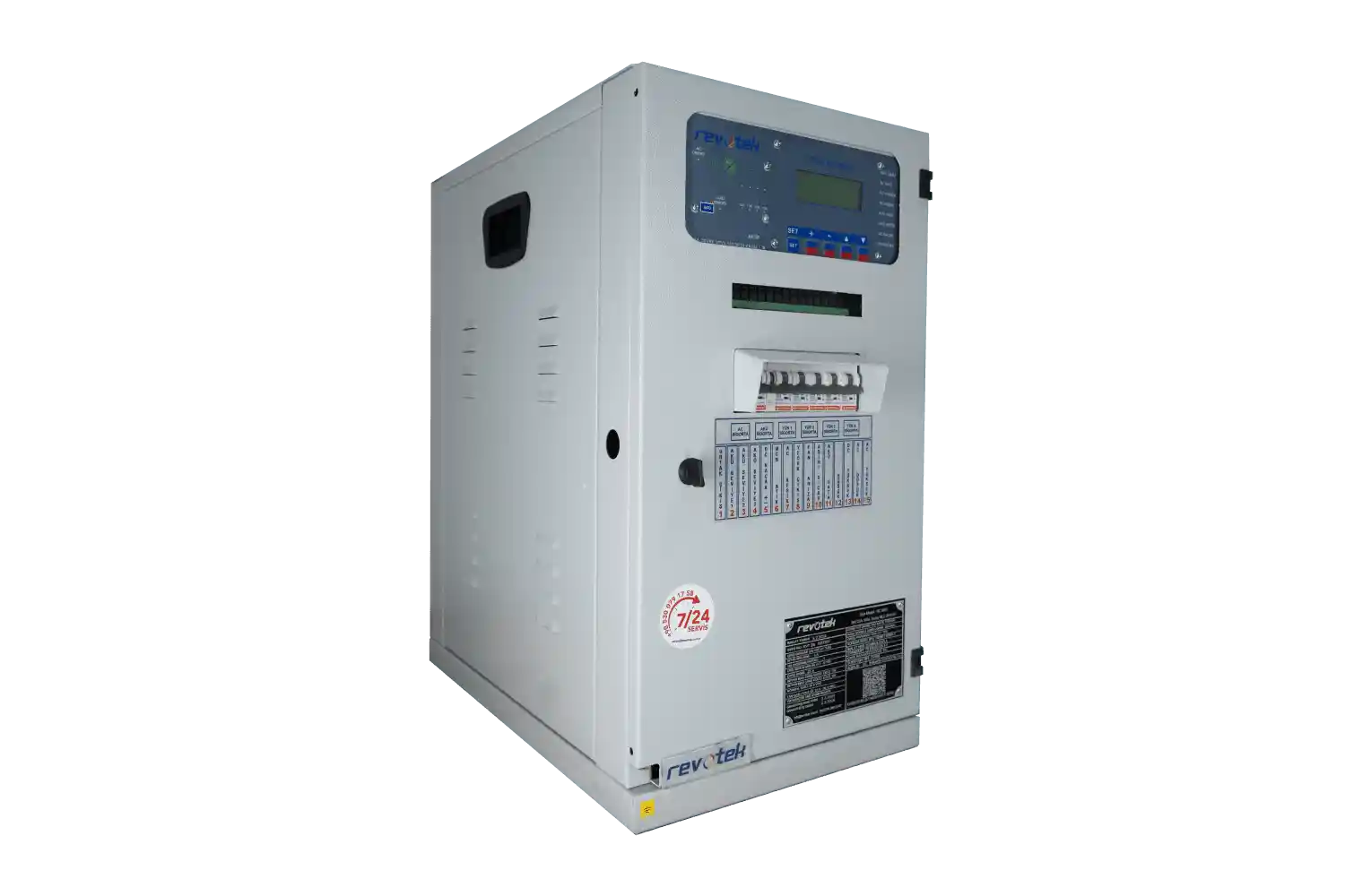 25A trafo çıkış gücüne sahip olup, çıkış noktalarında yer alan otomatik sigortalar, yardımcı kontaklarla desteklenmektedir.